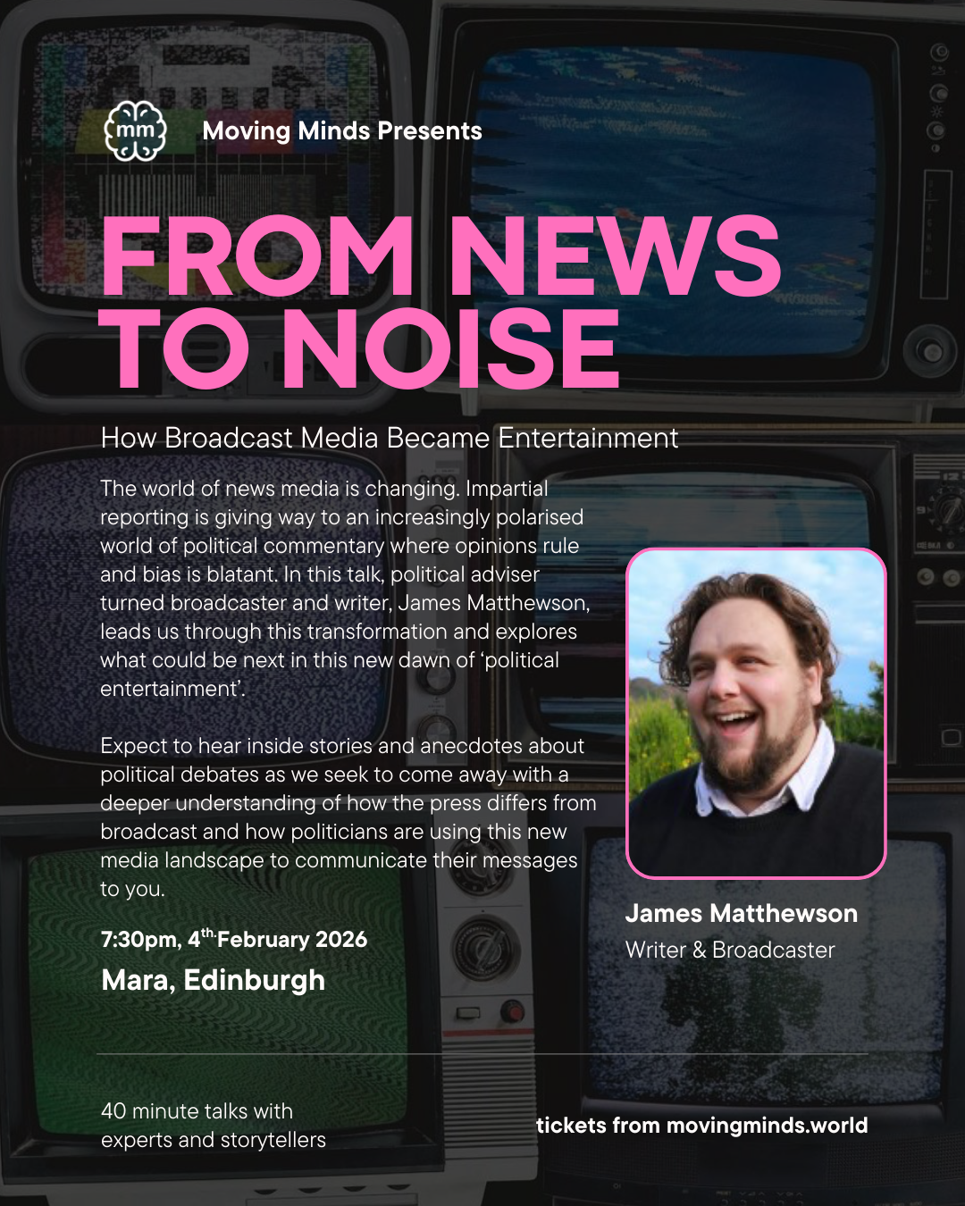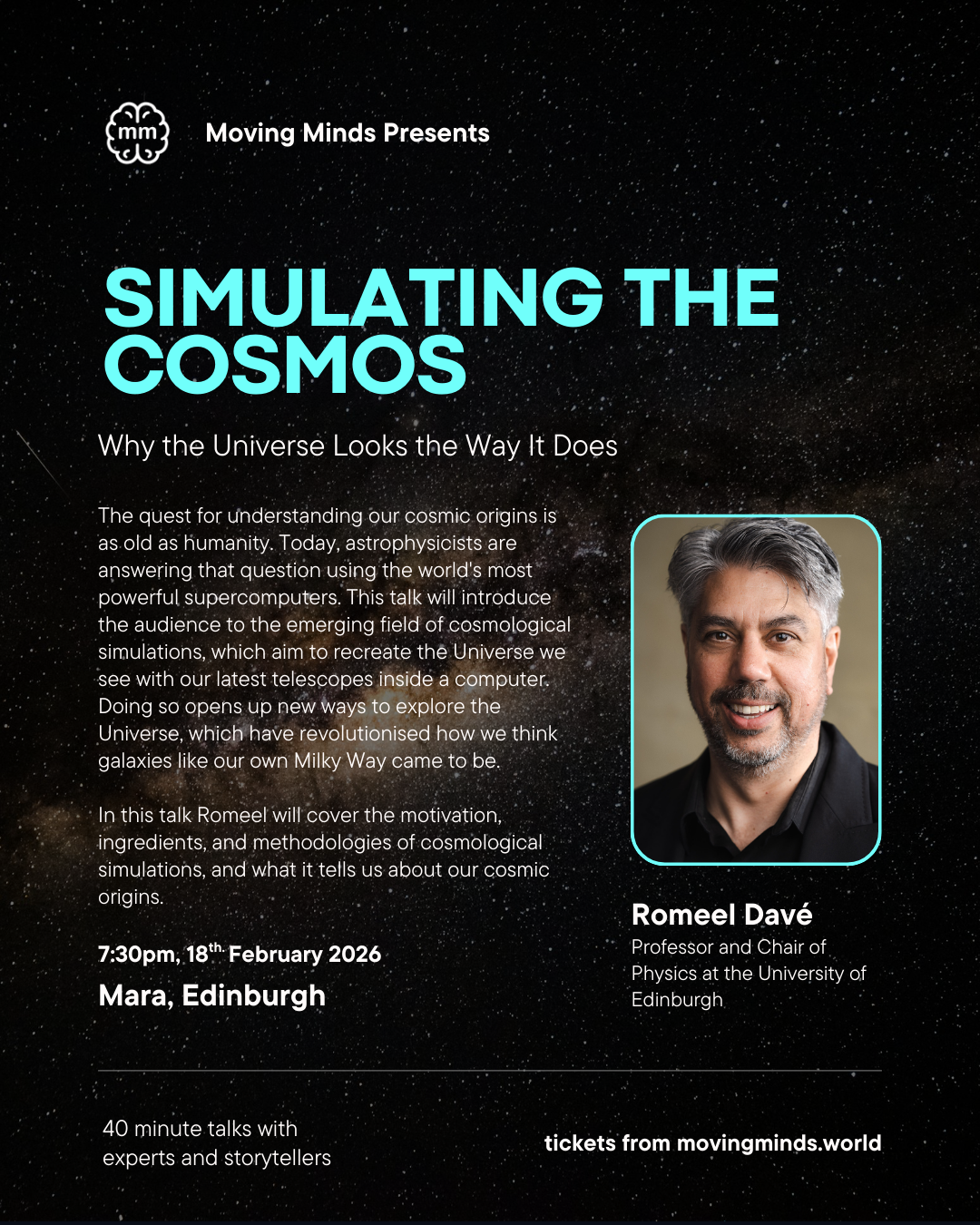 Moving Minds brings together ideas from science, psychology, history and everyday culture to help people see the world with fresh eyes. Each talk is built around questions that spark curiosity. The aim is to create AHA moments of insight that stay with you long after the night ends.