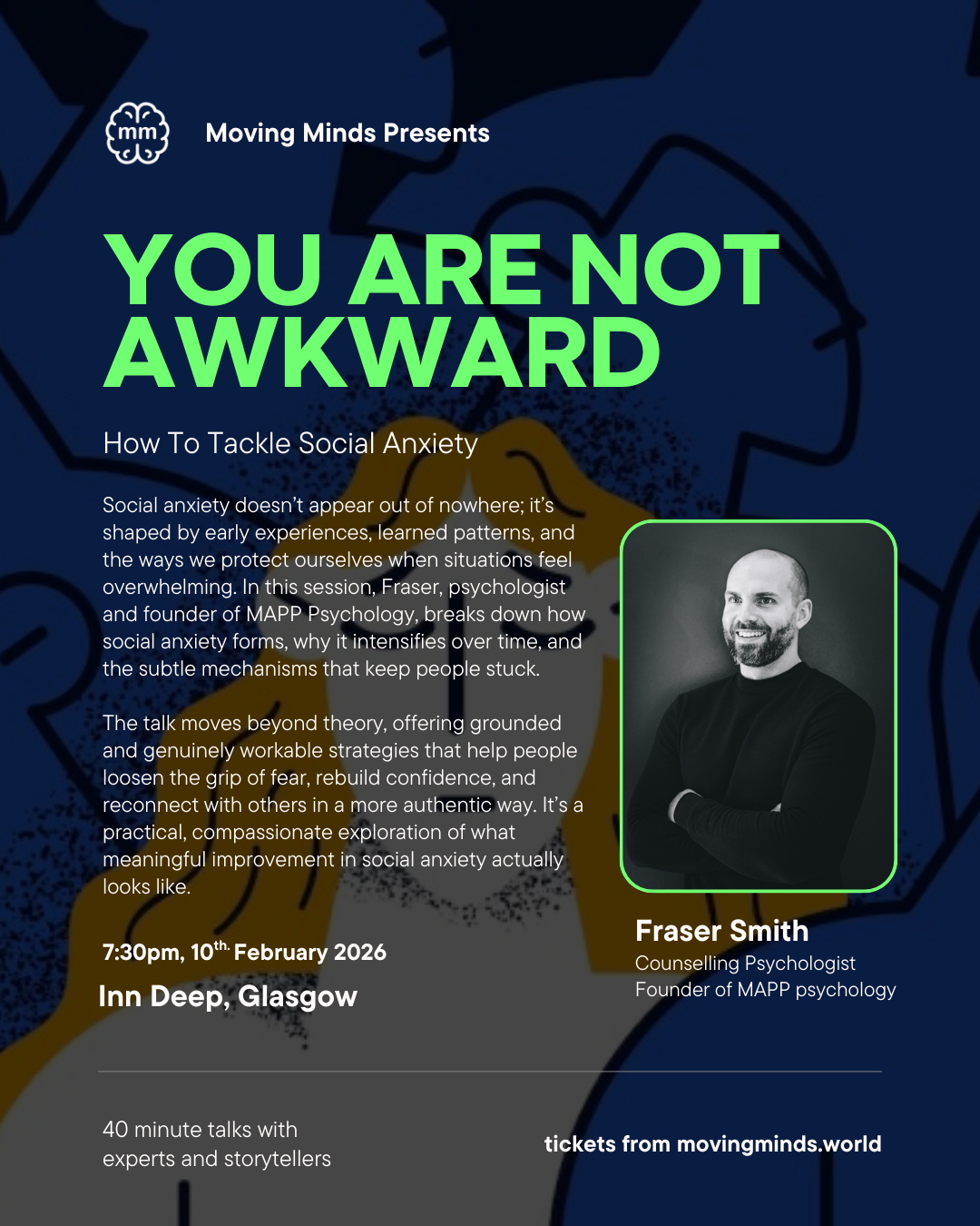 Social anxiety doesn’t appear out of nowhere; it’s shaped by early experiences, learned patterns, and the ways we protect ourselves when situations feel overwhelming. In this session, Fraser, psychologist and founder of MAP Psychology, breaks down how social anxiety forms, why it intensifies over time, and the subtle mechanisms that keep people stuck. The talk moves beyond theory, offering grounded and genuinely workable strategies that help people loosen the grip of fear, rebuild confidence, and reconnect with others in a more authentic way. It’s a practical, compassionate exploration of what meaningful improvement in social anxiety actually looks like..